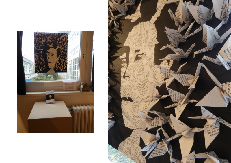Pour cela j’ai utilisé les ombres et les reflets lumineux d’objets du quotidien : la couronne de feuilles a été créée à partir d’une friteuse, j’ai utilisé un support et des protège- bouteilles en filet pour créer l’ombre d’un tunnel semblable à un ‘’trou de ver’’ (tunnel dans l’espace).